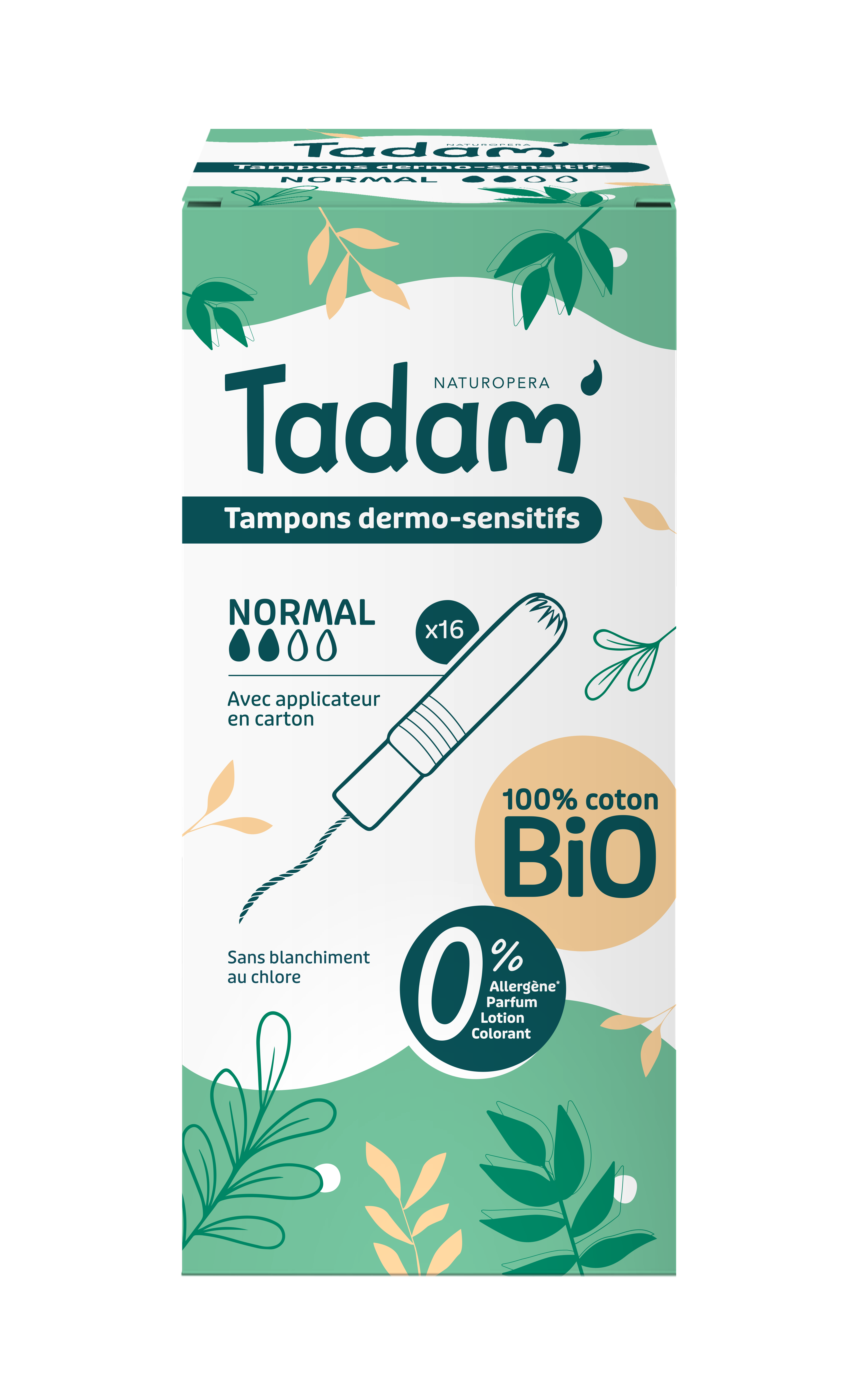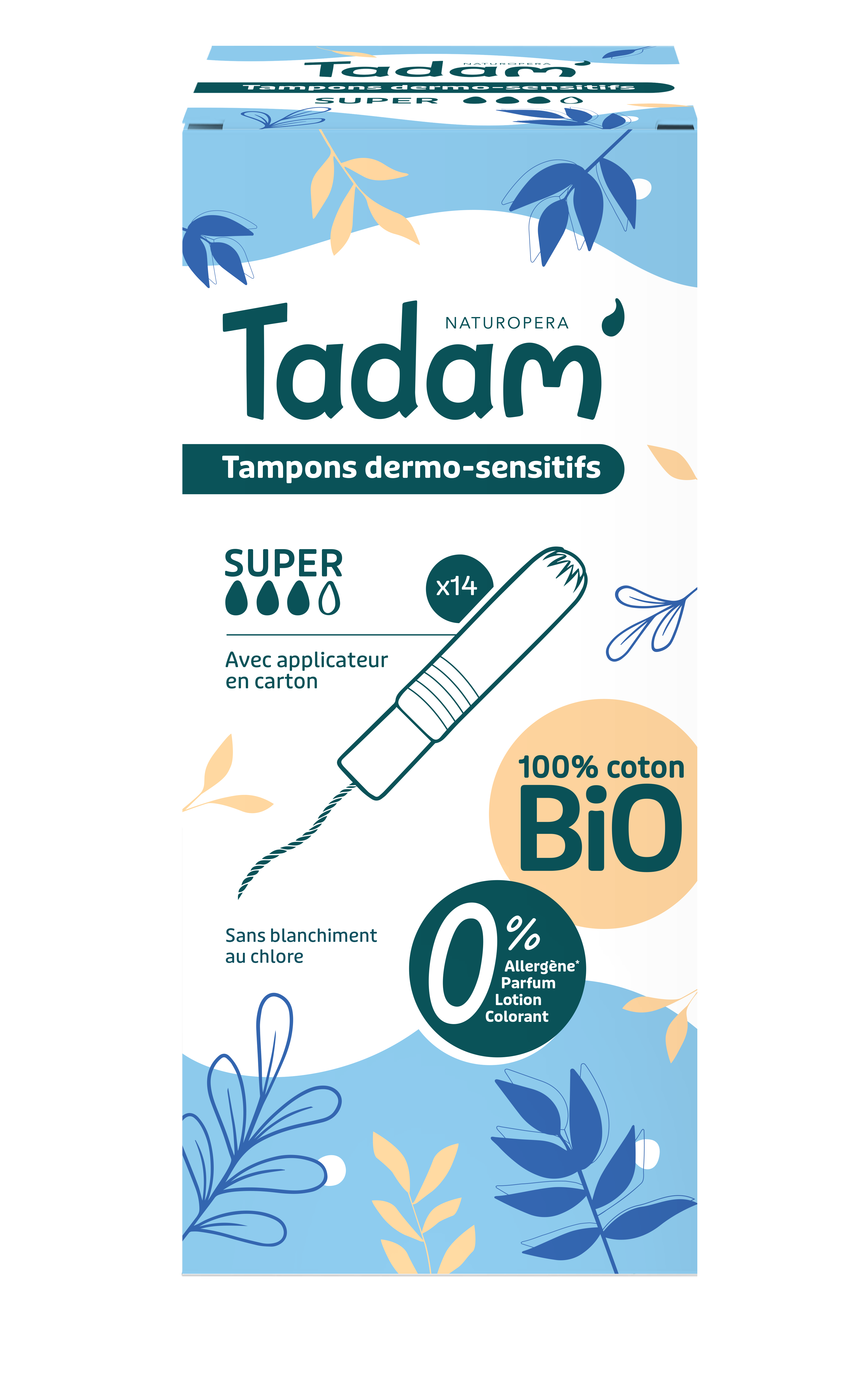 Tampony TADAM´s praktickým aplikátorem jsou vyrobeny z bio bavlny, bez parfemace, chlóru a zbytečné chemie. Díky tomu jsou vhodné i pro ženy s citlivou pokožkou nebo se sklonem k podráždění.